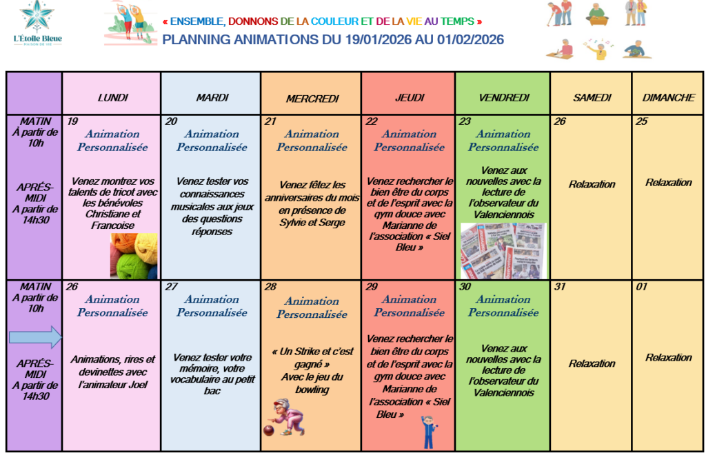 Planning animation du 19 Janvier au 1 Février 2026
